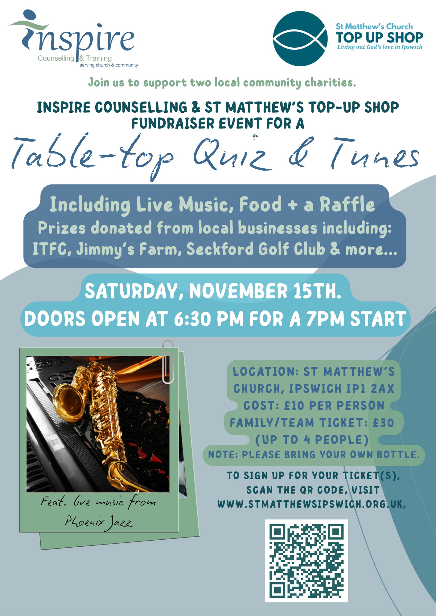 Please help us to raise funds at our joint fundraising event with the St. Matthew's Church Top Up Shop on Saturday 15 November.